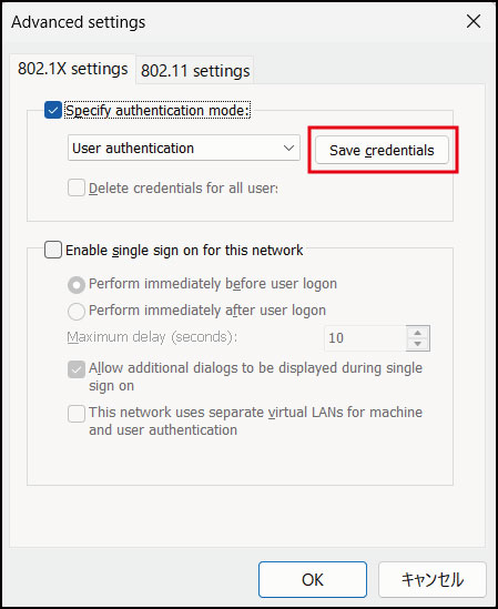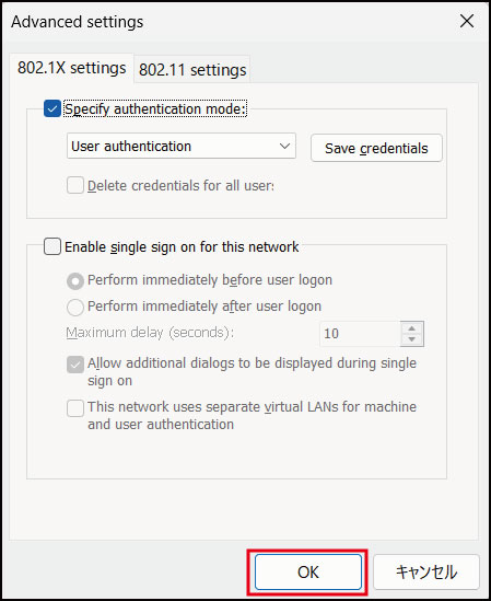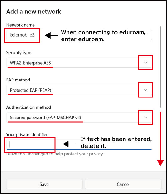 In the case of ITC account, enter, “your ITC account@user.keio.ac.jp” and “Wi-Fi connection password of the ITC account”.