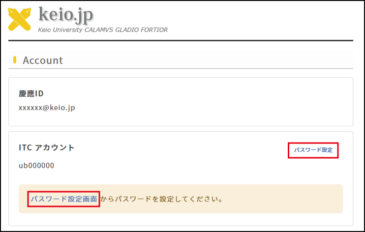 パスワードの設定・変更は、keio.jpのMy Accountページから行えます。
